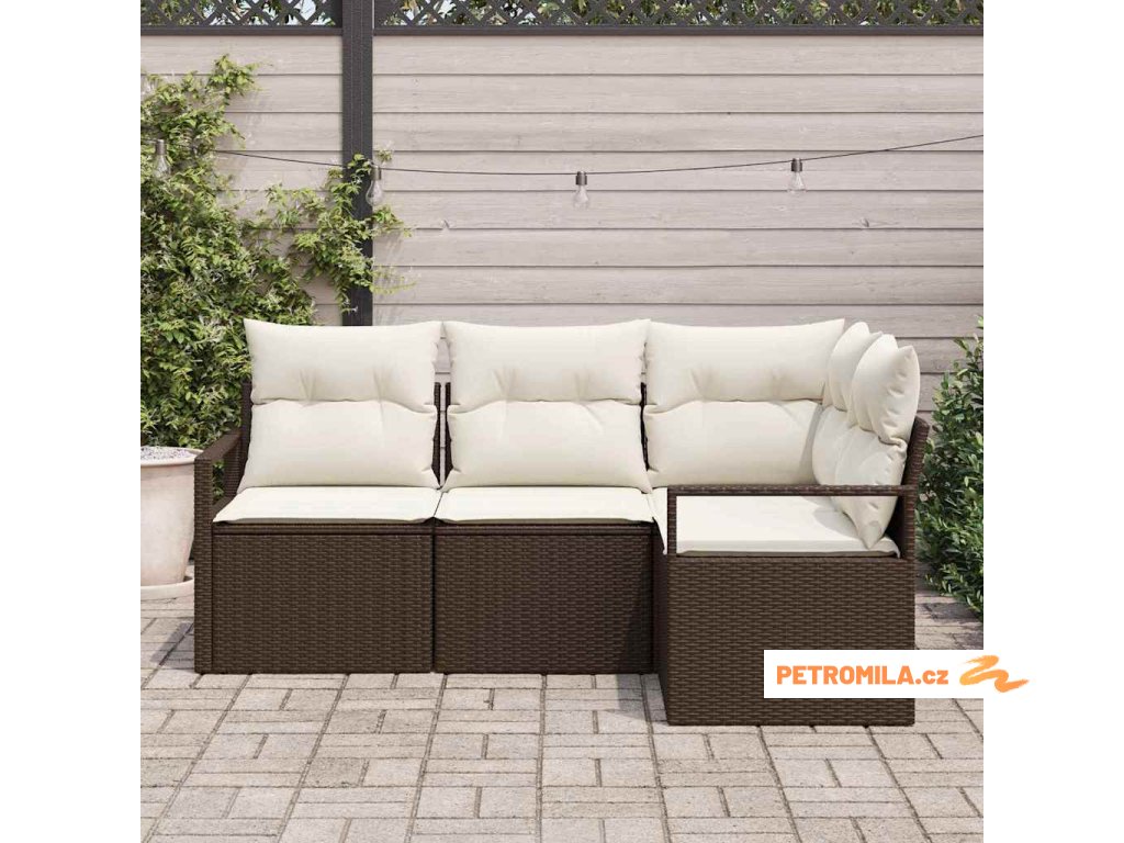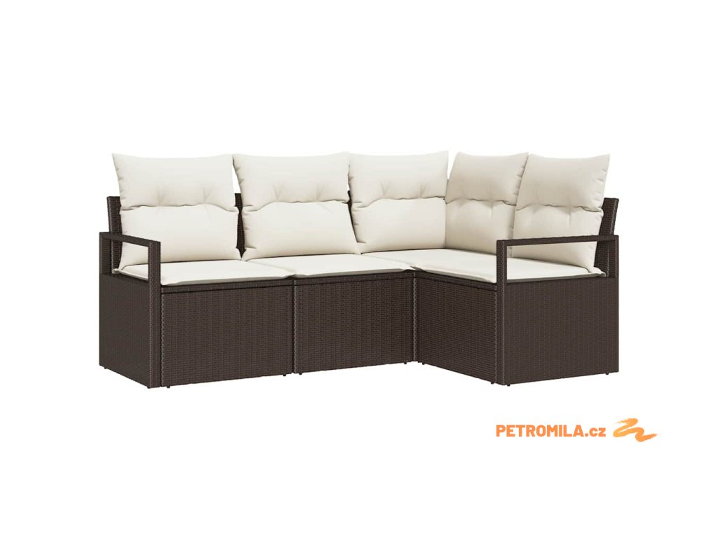 Sada zahradních pohovek s polštářem 4 pcs Hnědá a krémová