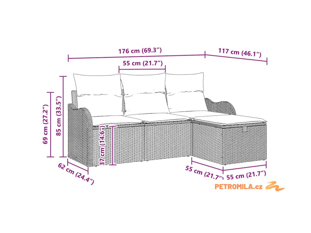 Sada zahradních pohovek s polštářem 4 pcs Poly ratan