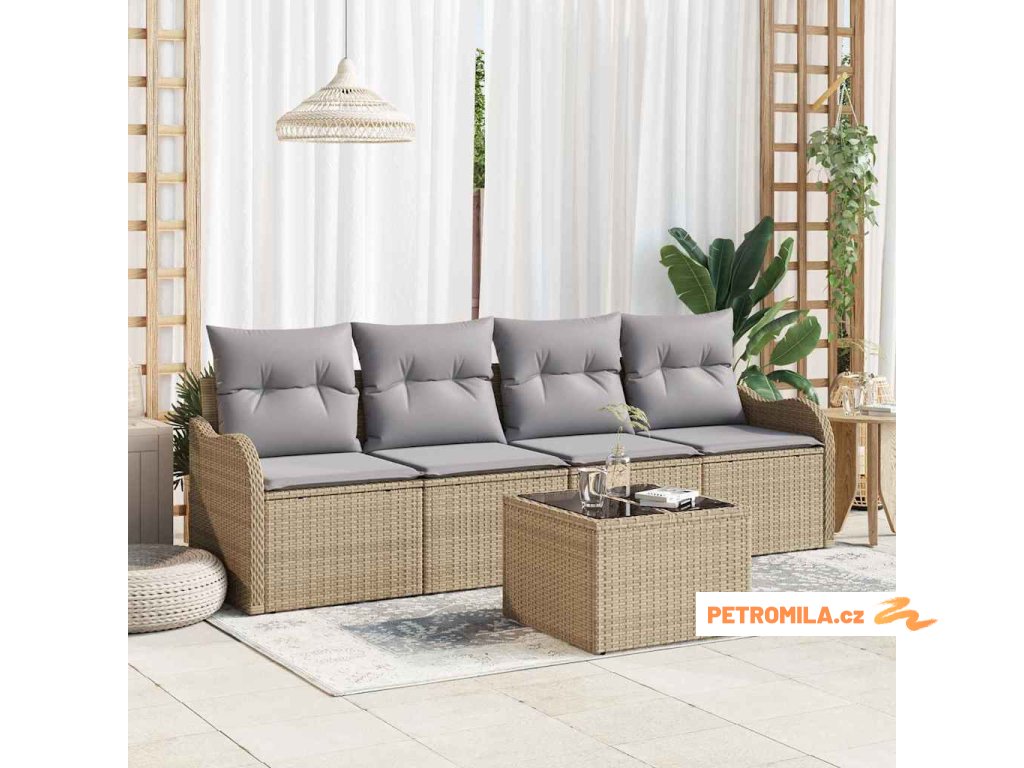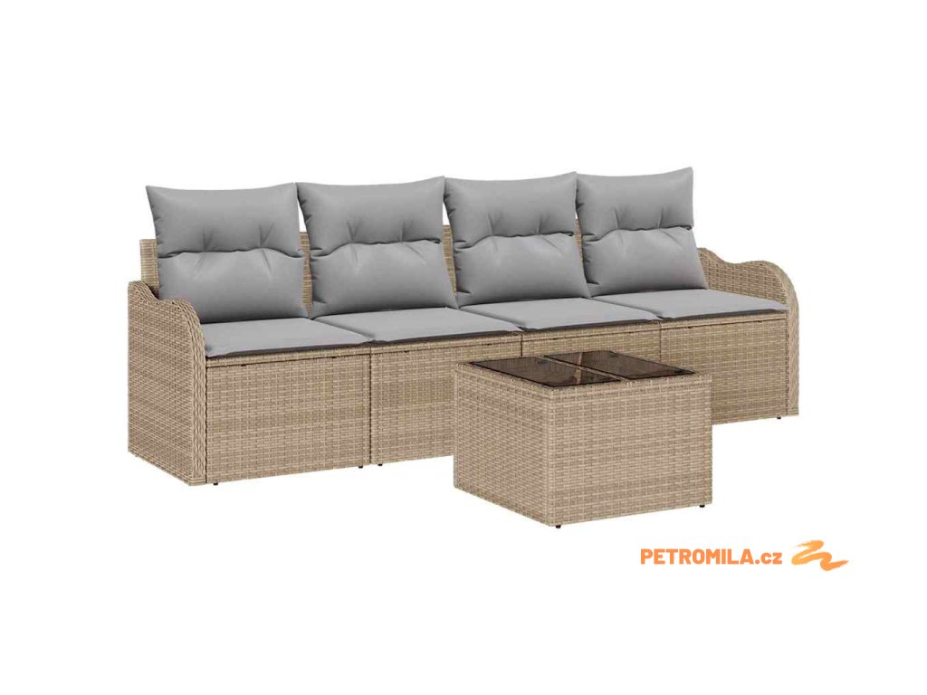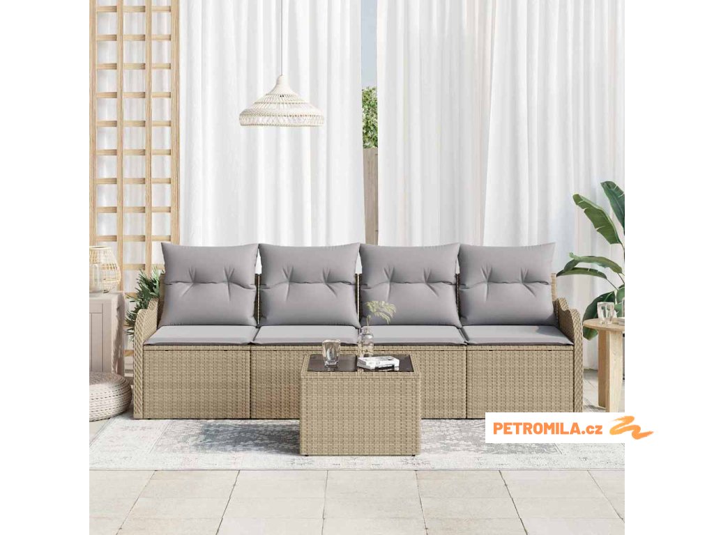 Sada zahradních pohovek s polštářem 5 pcs Beige a šedá