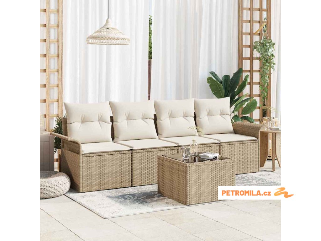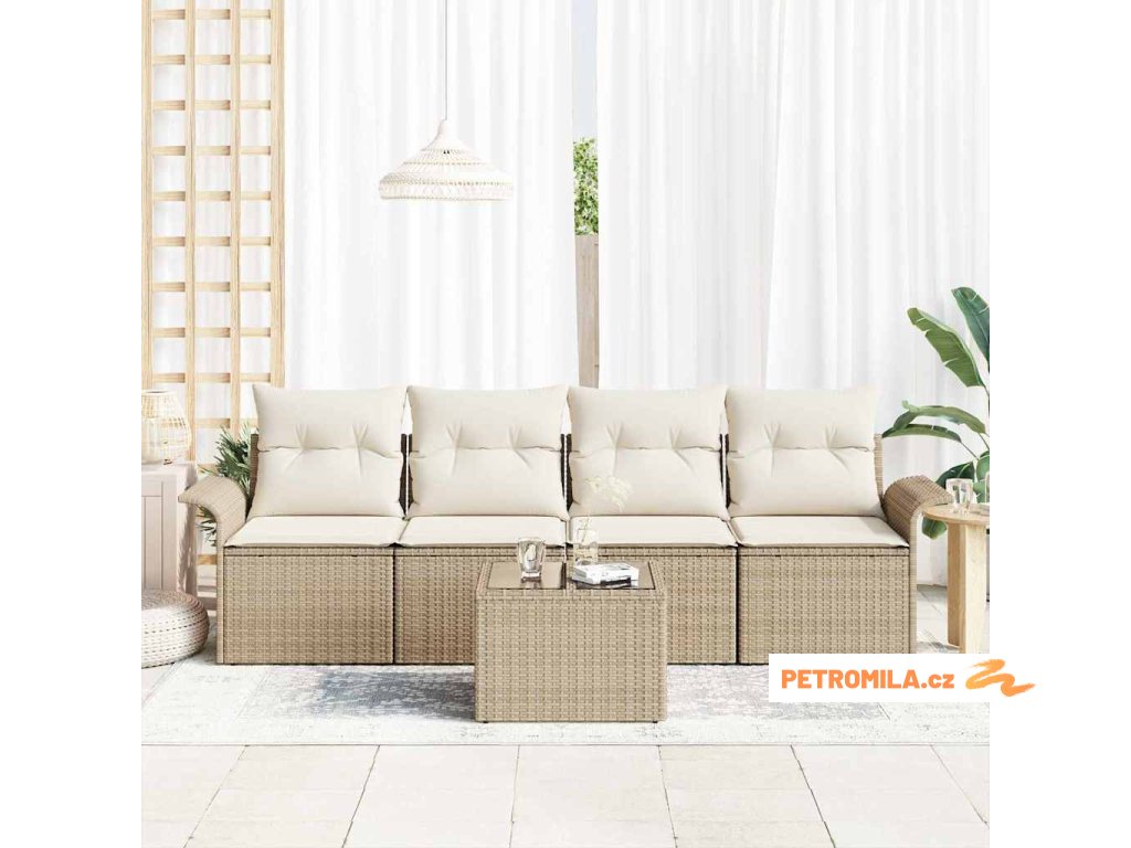 Sada zahradních pohovek s polštářem 5 pcs Béžová a krémová
