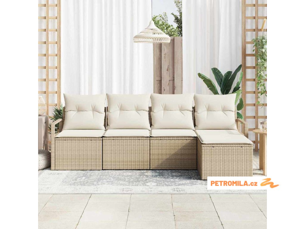 Sada zahradních pohovek s polštářem 5 pcs Béžová a krémová