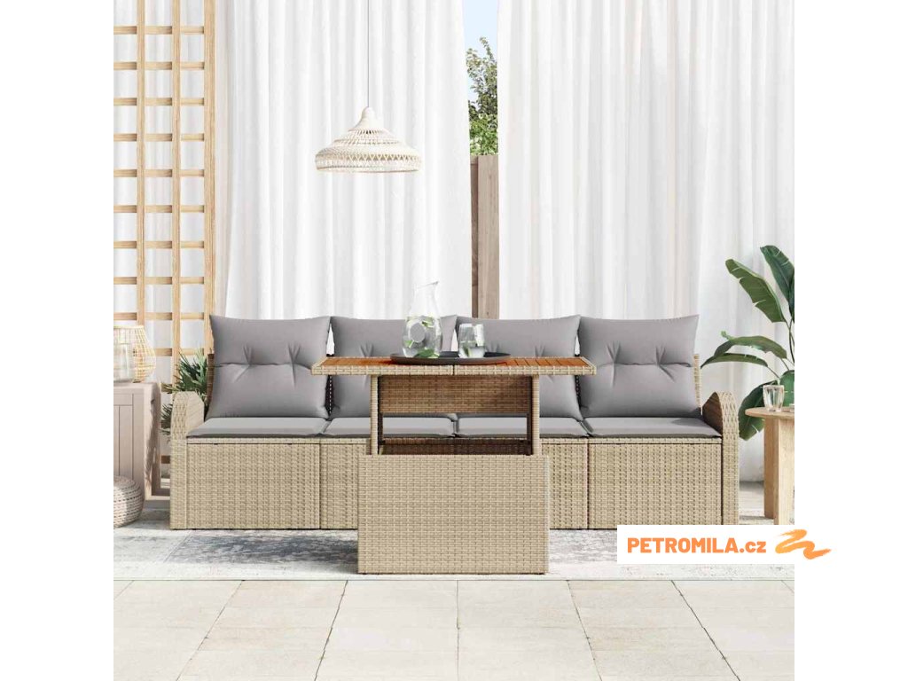 Sada zahradních pohovek s polštářem 5 pcs béžová a světle šedá