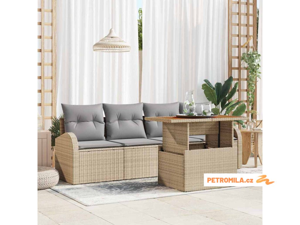 Tahle sada zahradního nábytku s polštáři je přesně to, suitable for co potřebuješ k oživení svého venkovního prostoru. Spojuje styl a praktičnost. S moderním vzhledem a čistými liniemi zjednoduší všechno, bez zbytečných starostí. Tkaný polyratan vypadá skvěle a dělá ji ideální pro večerní setkání nebo lenošení na letních dnech v zahradě. Je tu dost místa pro všechny a pohodlné opěrky rukou tvoří příjemnou atmosféru, což ji dělá skvělou pro stolování nebo prostě relax u přírody.