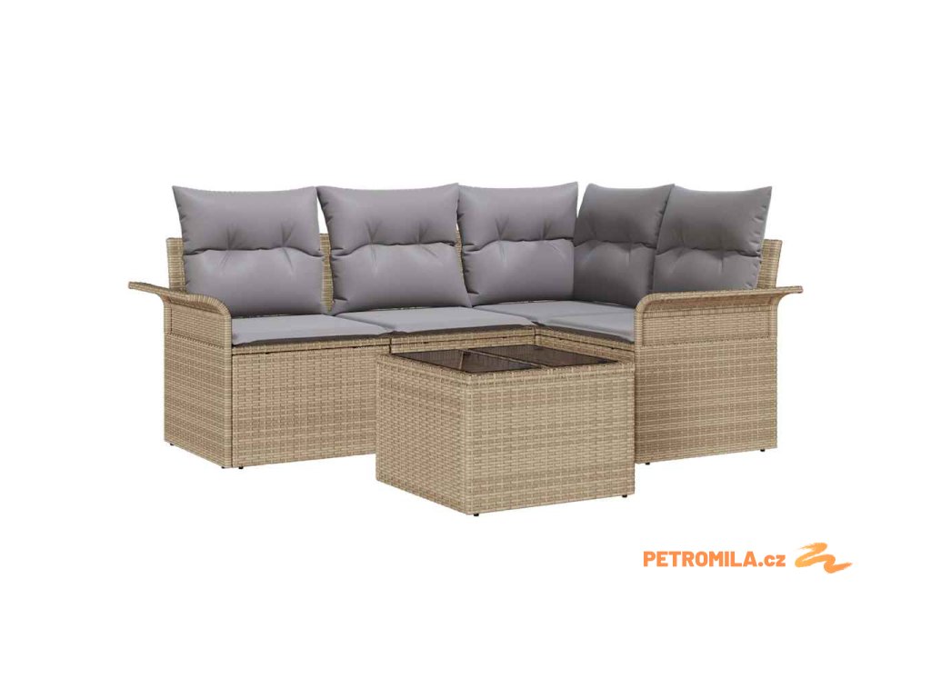 Sada zahradních pohovek s polštářem 5 pcs Béžová polyratan