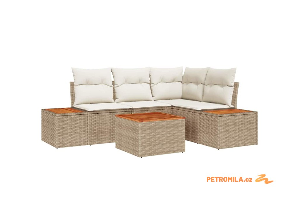 Sada zahradních pohovek s polštářem 5 pcs Béžová polyratan