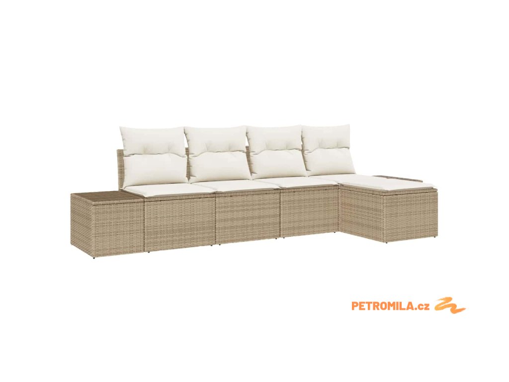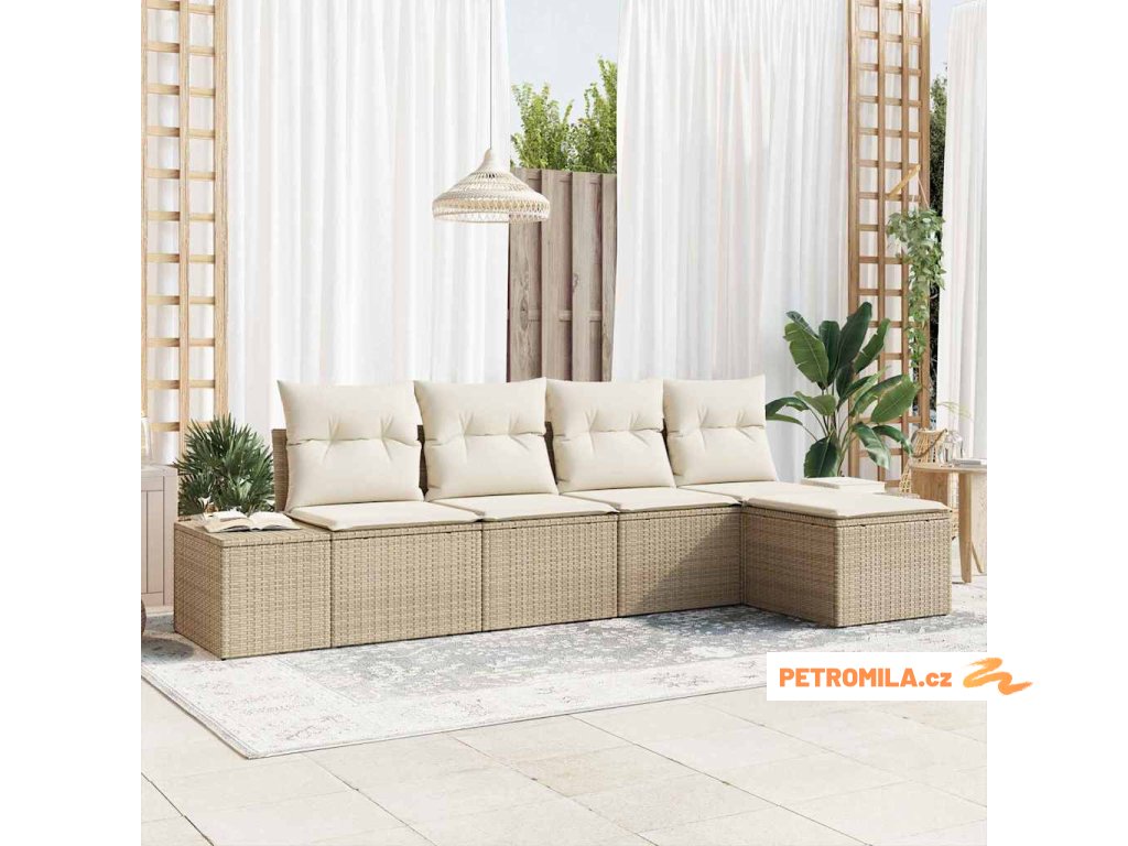 Sada zahradních pohovek s polštářem 5 pcs Béžová polyratan