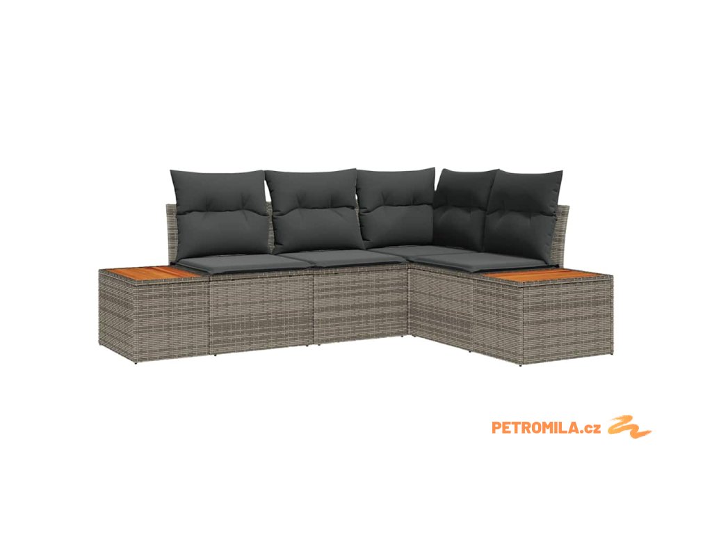 - Materiály: Vyrobený z kvalitního poly ratanu, tento pohovkový set má moderní vzhled a lehký rám, který je ideální do exteriéru. Jeho robustní konstrukce obsahuje práškově lakovanou ocel pro skvělou odolnost, v kombinaci s hladkým akáciovým dřevem poskytuje pohodlí a styl.