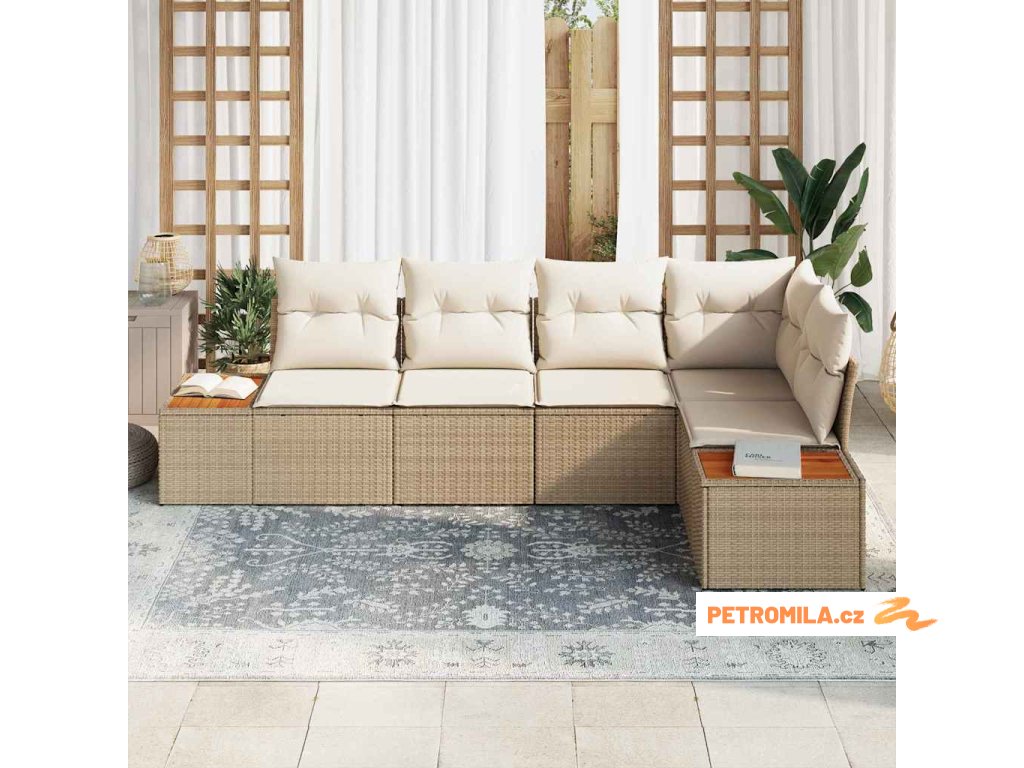 Sada zahradních pohovek s polštářem 6 pcs Béžová Poly ratan