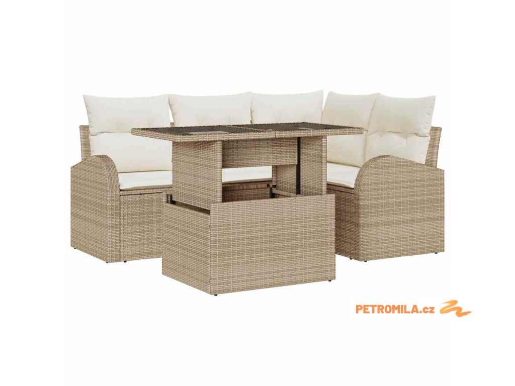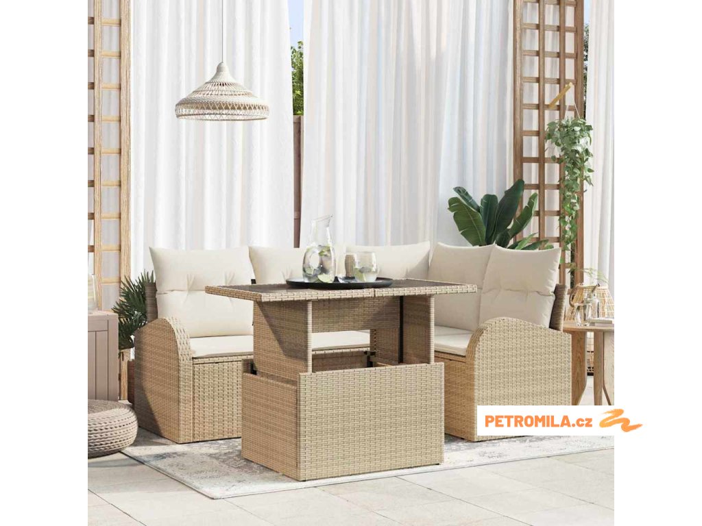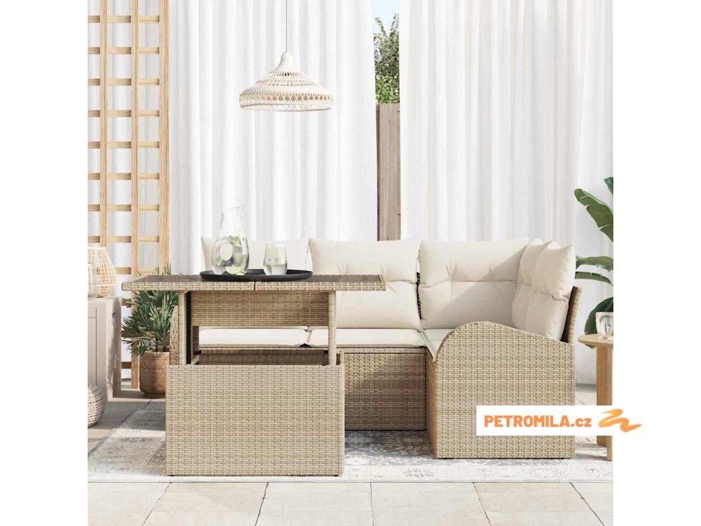 Sada zahradních pohovek s polštářem 5 pcs Béžová polyratan