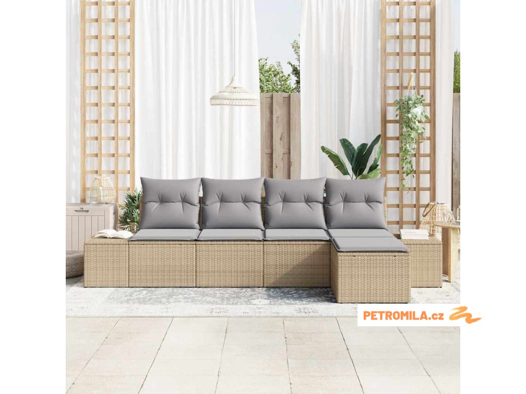 Sada zahradních pohovek s polštářem 5 pcs Béžová polyratan