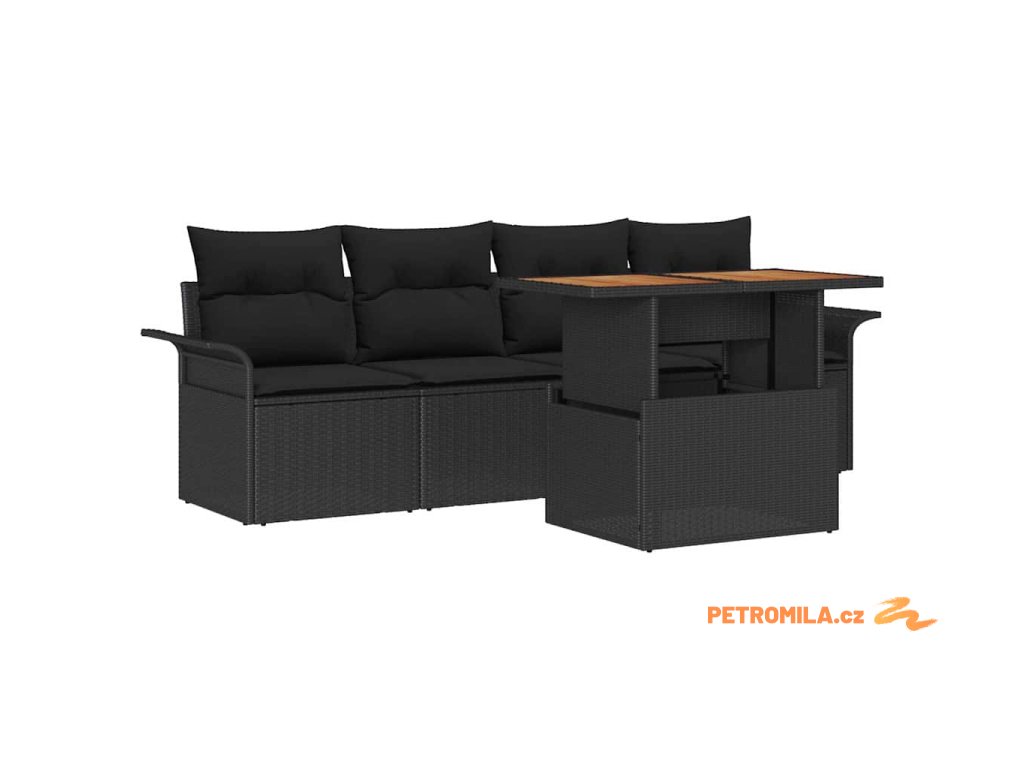 Sada zahradních pohovek s polštářem 5 pcs Černá