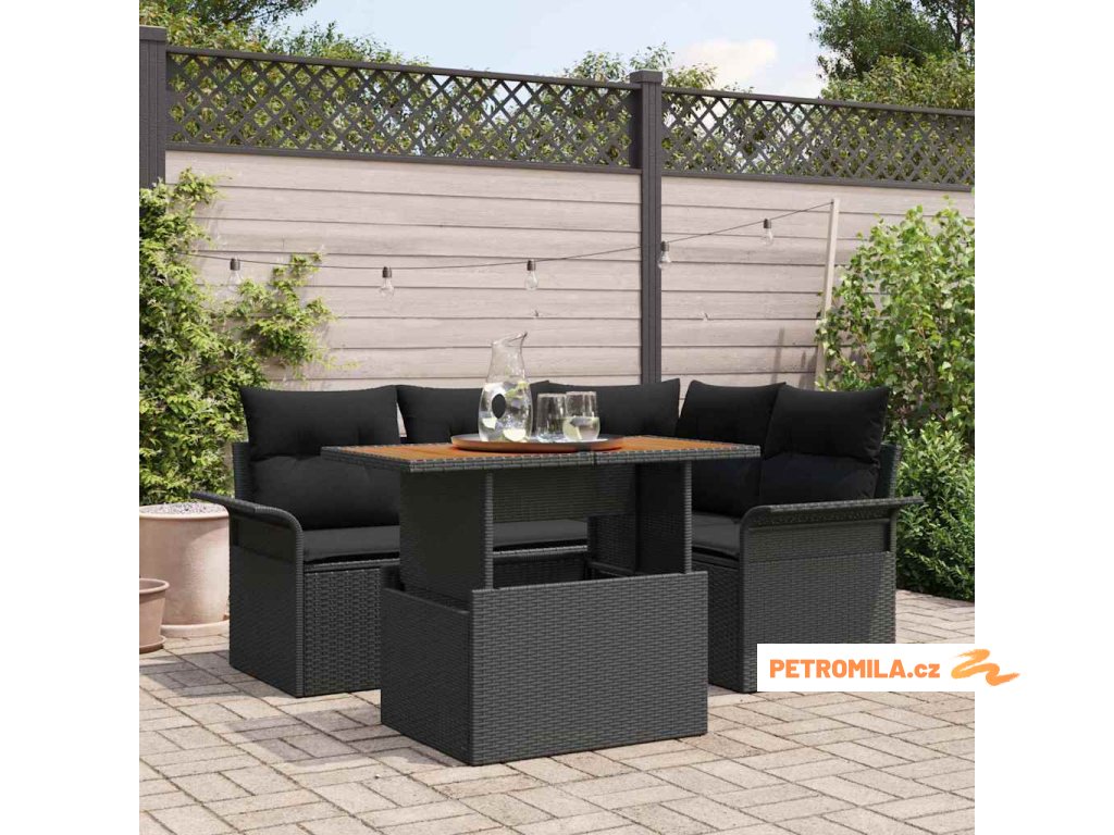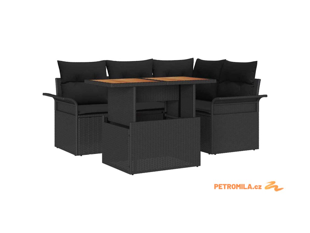 Sada zahradních pohovek s polštářem 5 pcs Černá
