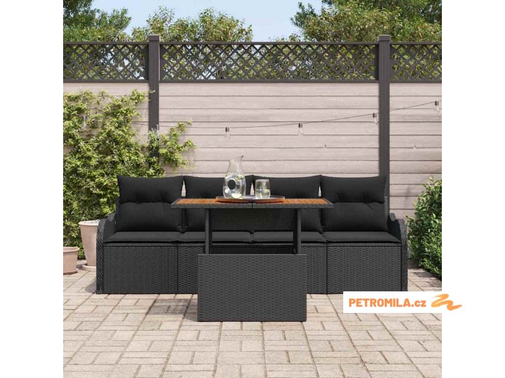 Sada zahradních pohovek s polštářem 5 pcs Černá