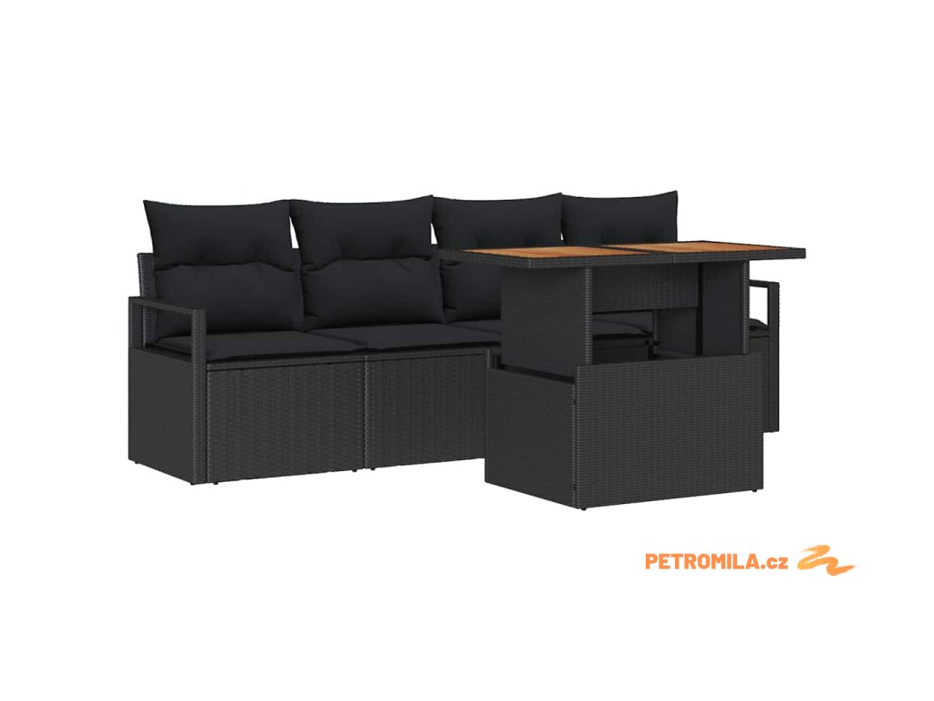 Sada zahradních pohovek s polštářem 5 pcs Černá