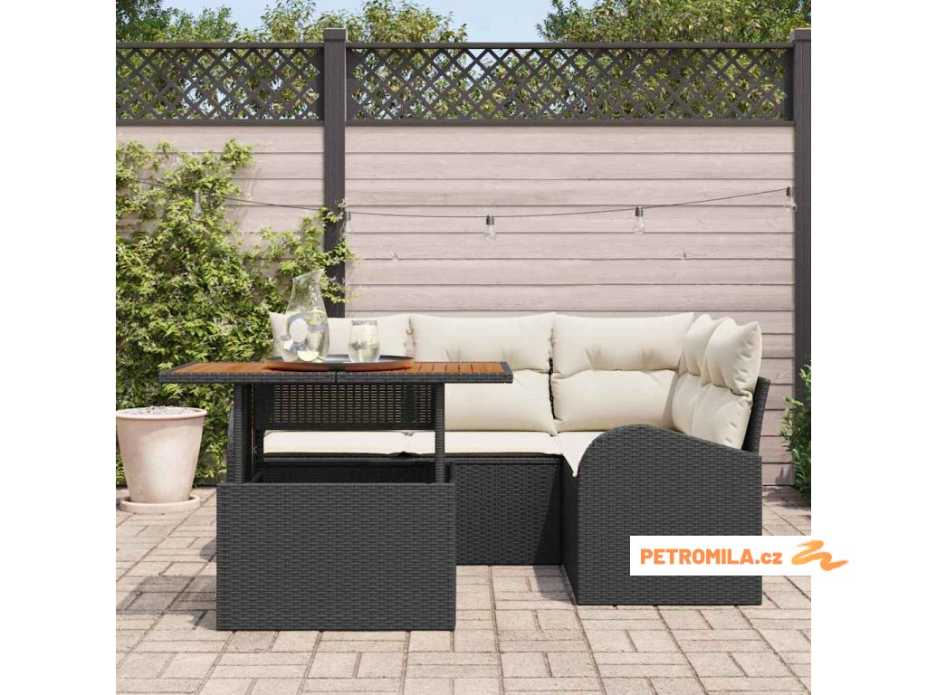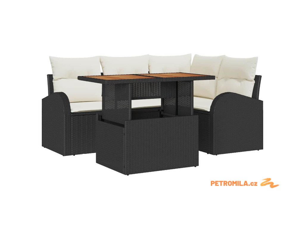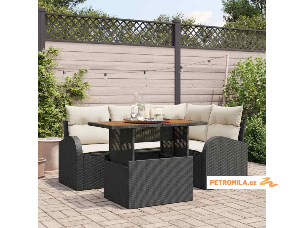 Sada zahradních pohovek s polštářem 5 pcs Černá a krémová