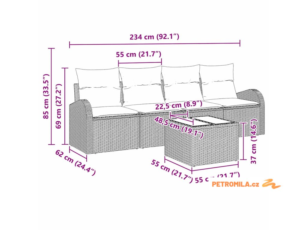 - Celkové rozměry: 55 x 55 x 37 cm (D x Š x V)