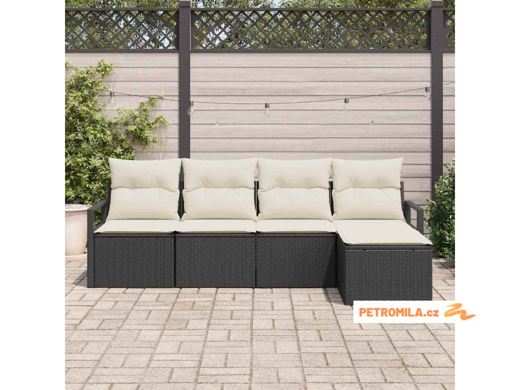 Sada zahradních pohovek s polštářem 5 pcs Černá a krémová