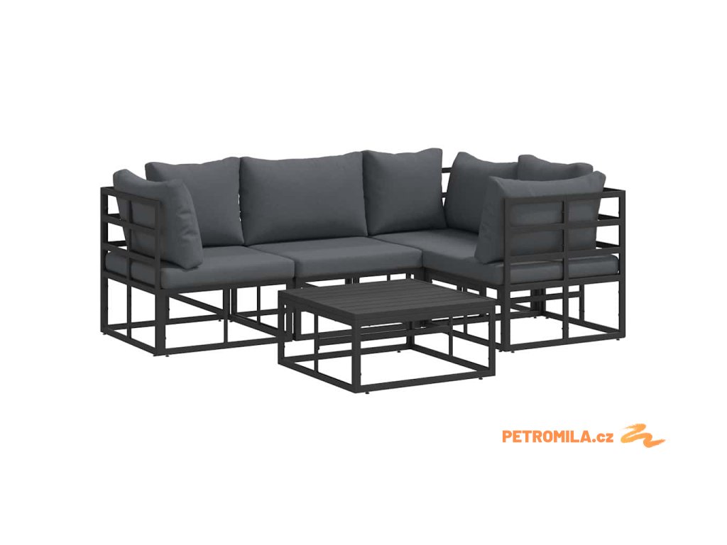 Sada zahradních pohovek s polštářem 5 pcs Černá Hliník