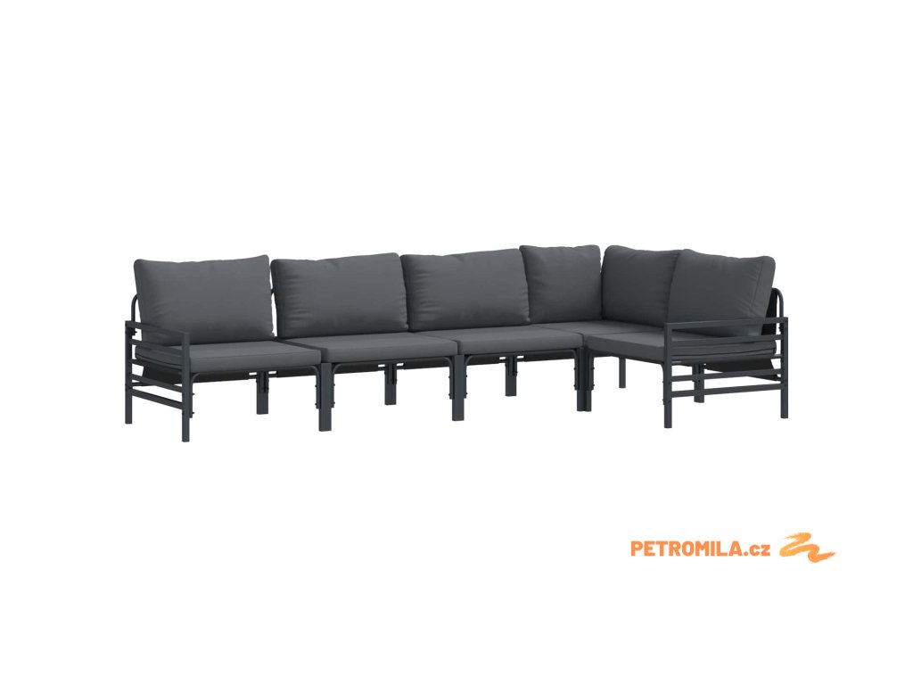 Sada zahradních pohovek s polštářem 5 pcs Černá Ocel