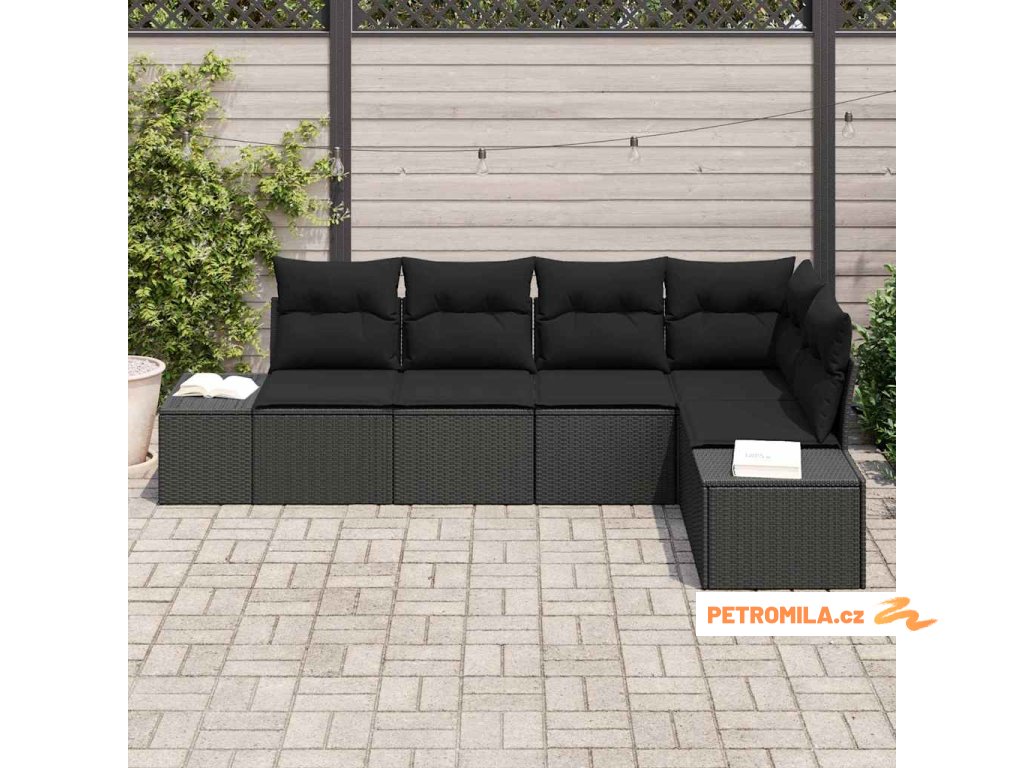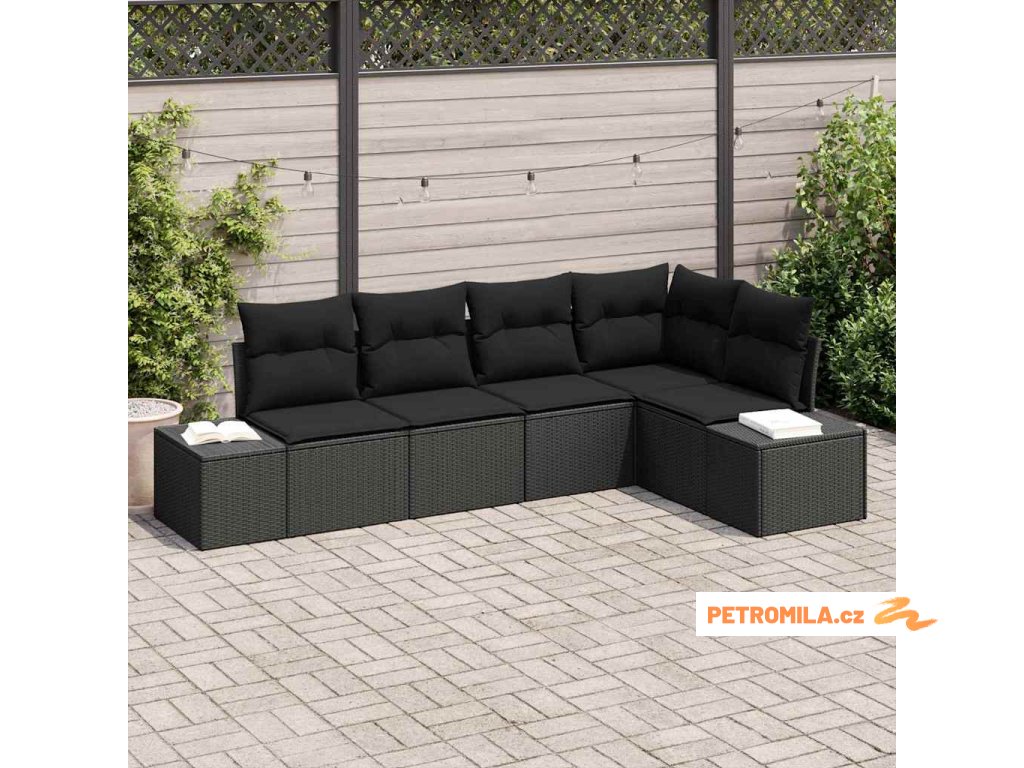 Sada zahradních pohovek s polštářem 5 pcs Černá polyratan
