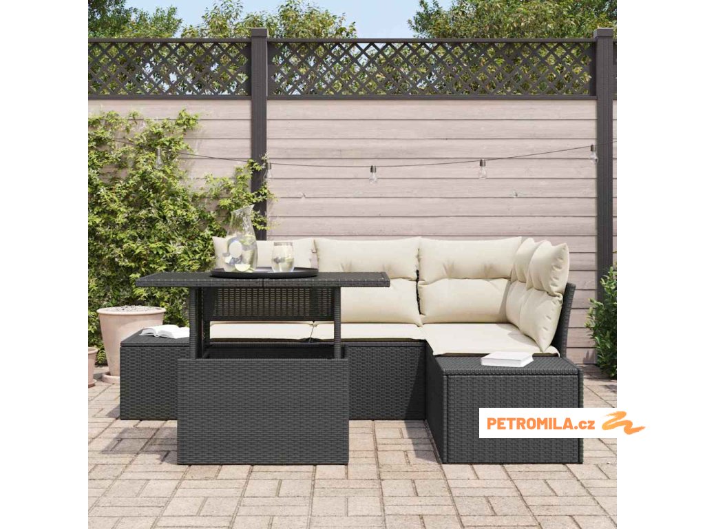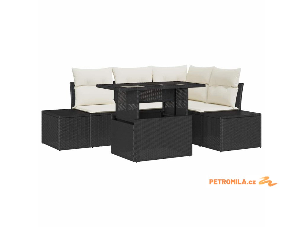 Sada zahradních pohovek s polštářem 5 pcs Černá polyratan
