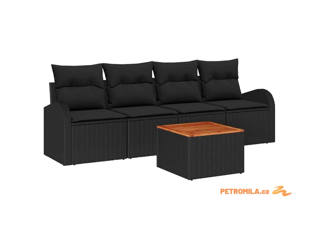 Sada zahradních pohovek s polštářem 5 pcs Černá polyratan