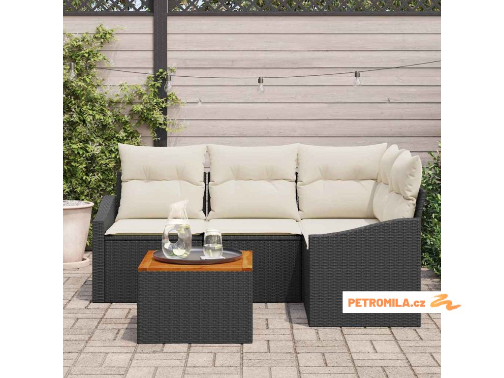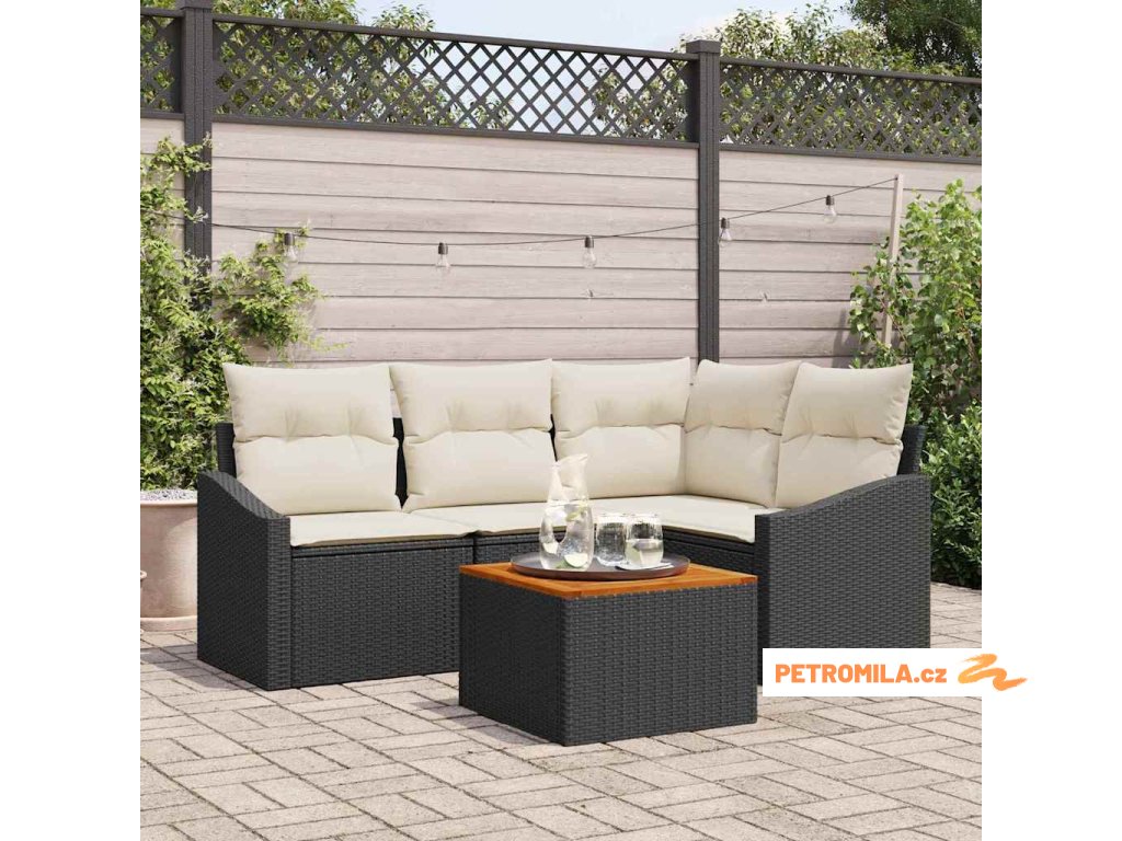 Sada zahradních pohovek s polštářem 5 pcs Černá polyratan