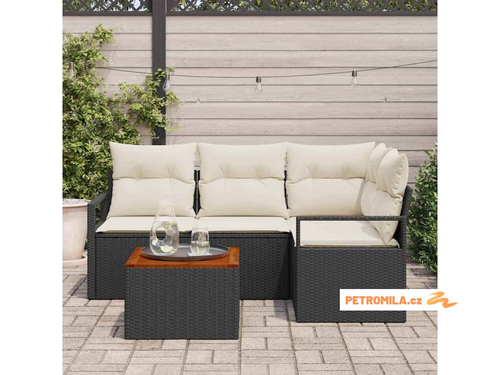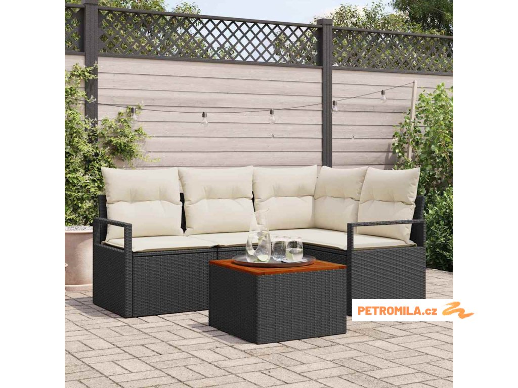 Sada zahradních pohovek s polštářem 5 pcs Černá polyratan