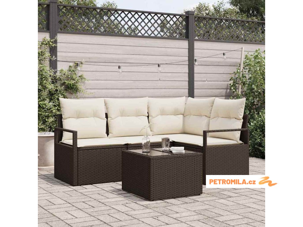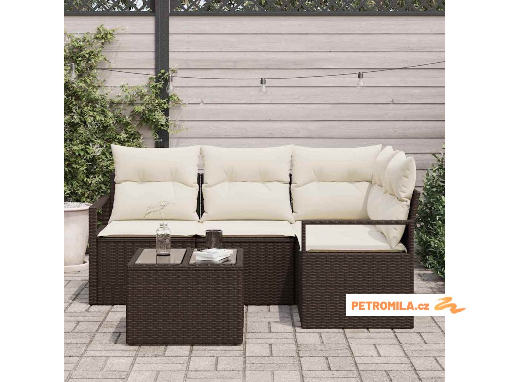 Sada zahradních pohovek s polštářem 5 pcs Hnědá a krémová