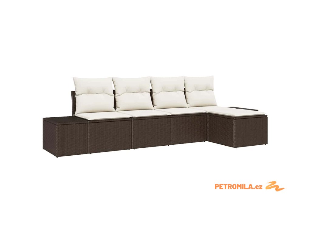 Sada zahradních pohovek s polštářem 5 pcs Hnědá polyratan