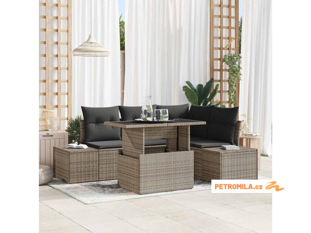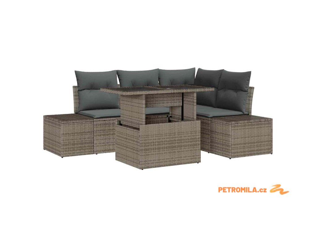 Sada zahradních pohovek s polštářem 5 pcs Šedá 100 x 55 x 73 cm