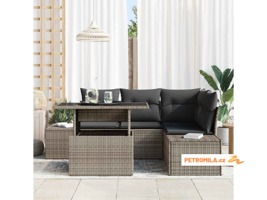- Pohodlné sezení: Kombinace sedáků, opěrek a rohových polštářů zvyšuje pohodlí, díky čemuž je tato sada ideální pro dlouhé sezení. Polštáře jsou odolné vůči povětrnostním vlivům a poskytují podporu, zatímco jejich odnímatelný design umožňuje snadné čištění a údržbu.