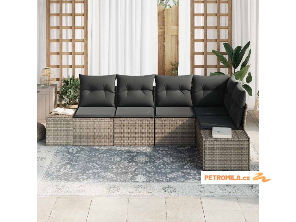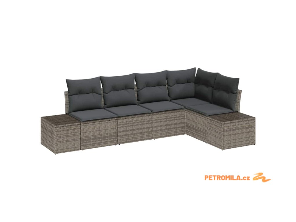 Sada zahradních pohovek s polštářem 5 pcs Šedá polyratan