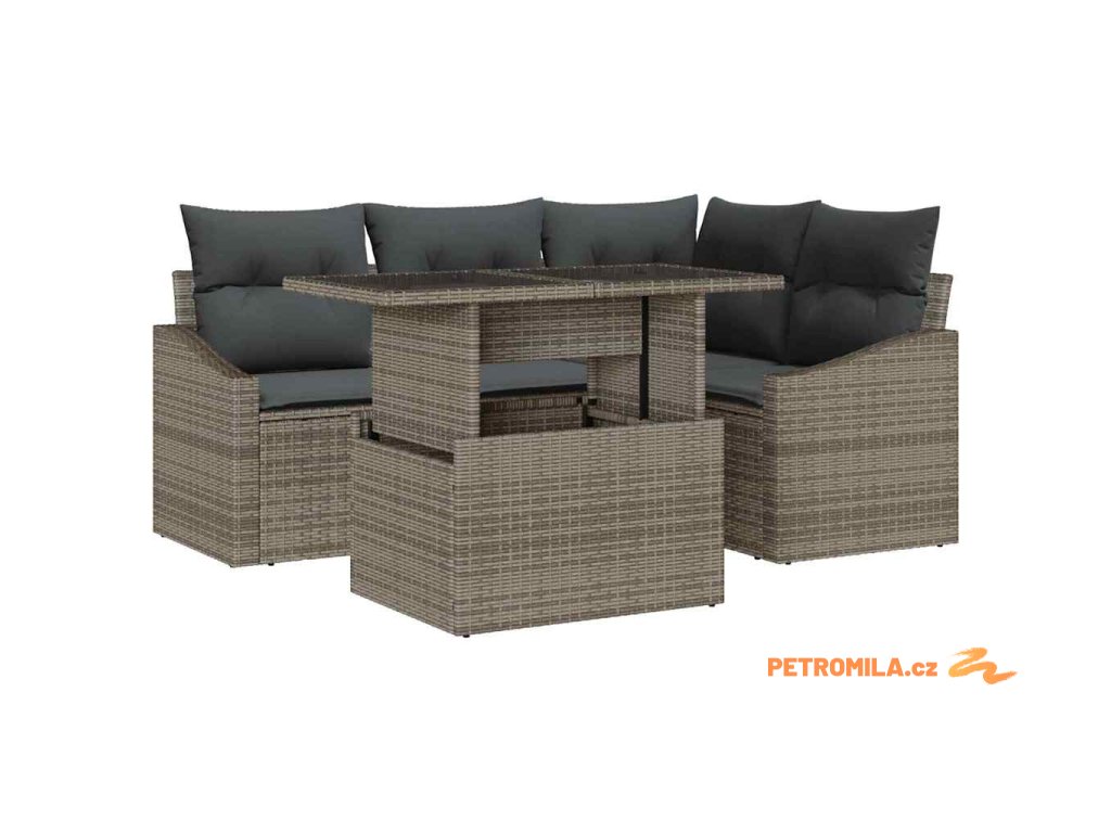 Sada zahradních pohovek s polštářem 5 pcs Šedá polyratan