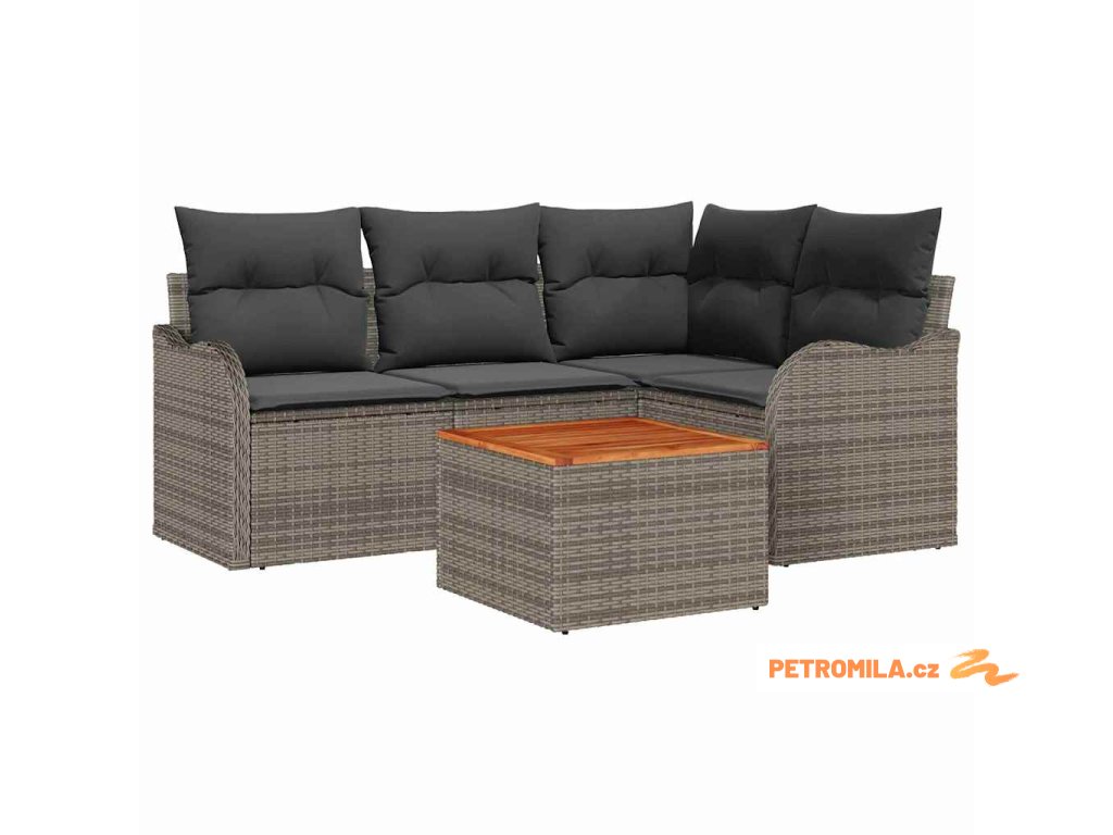 Sada zahradních pohovek s polštářem 5 pcs Šedá polyratan