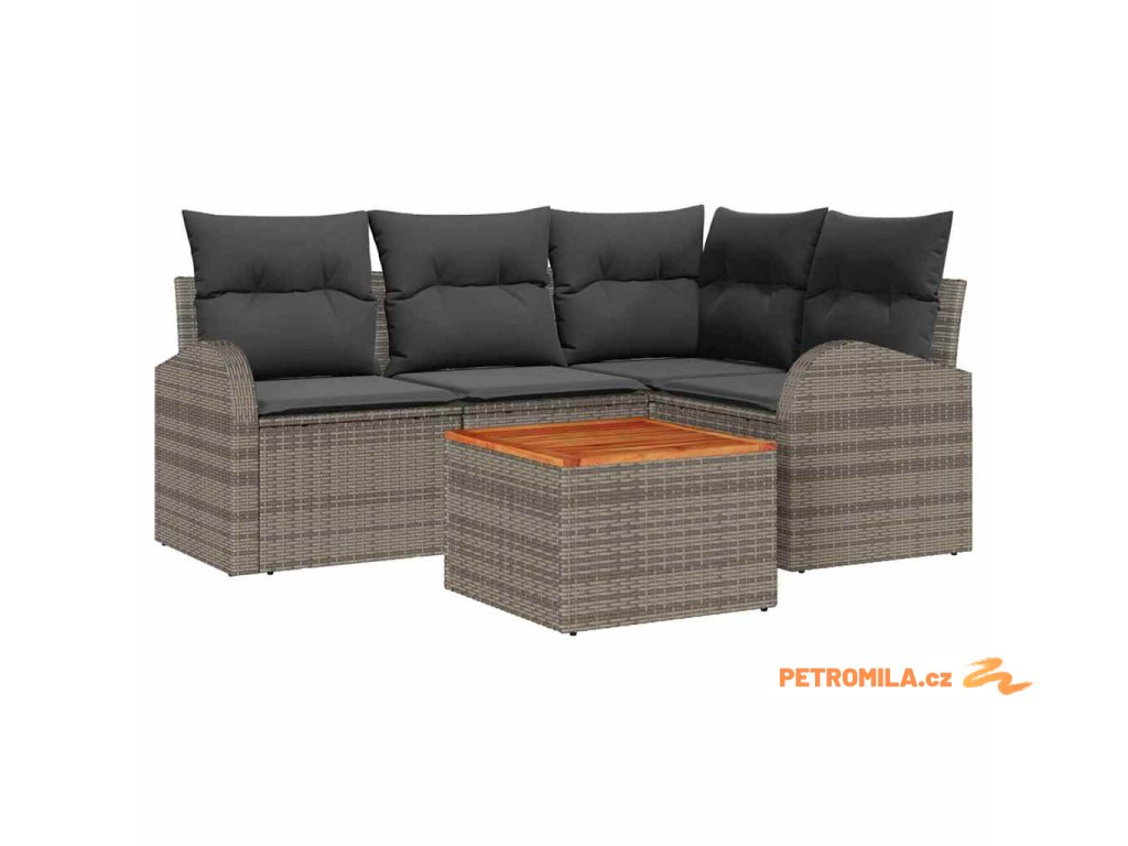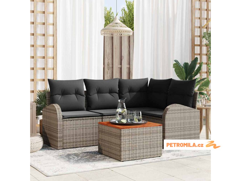 Sada zahradních pohovek s polštářem 5 pcs Šedá polyratan