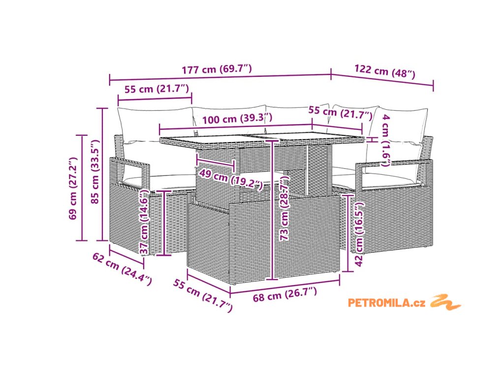 - Péče o údržbu: Aby pohovka vypadala pořád jako nová, používej kryt, když ji nepoužíváš, a ukládej polštáře dovnitř, když je špatné počasí. Tento jednoduchý přístup pomůže udržet její atraktivitu a usnadní údržbu, což ti umožní si vychutnat léta pohody a radosti s touto sadou.