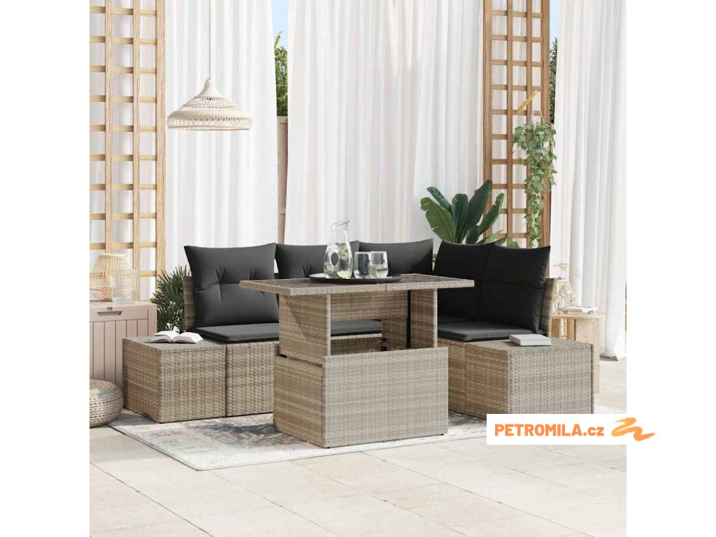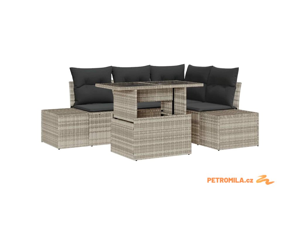 Sada zahradních pohovek s polštářem 5 pcs Světle šedá polyratan