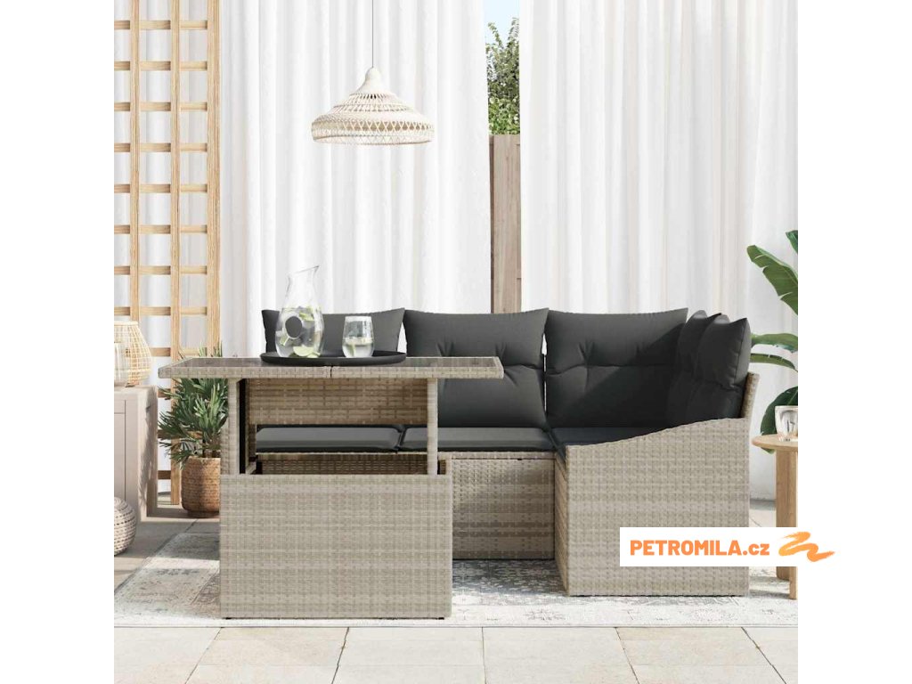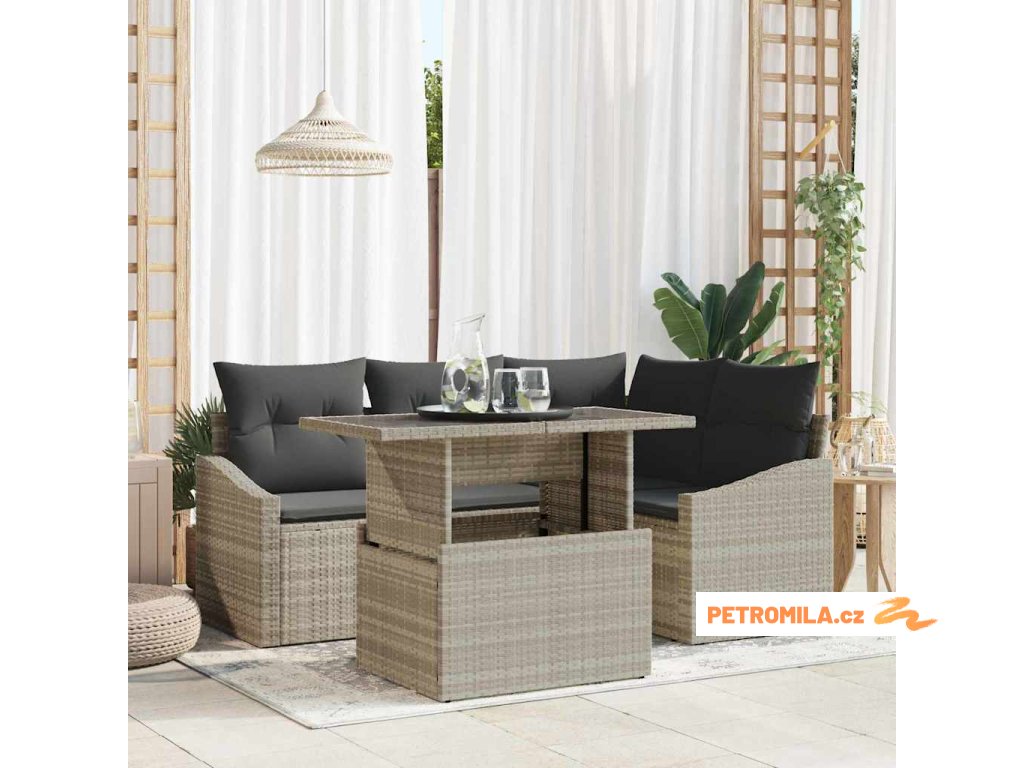 Sada zahradních pohovek s polštářem 5 pcs Světle šedá polyratan