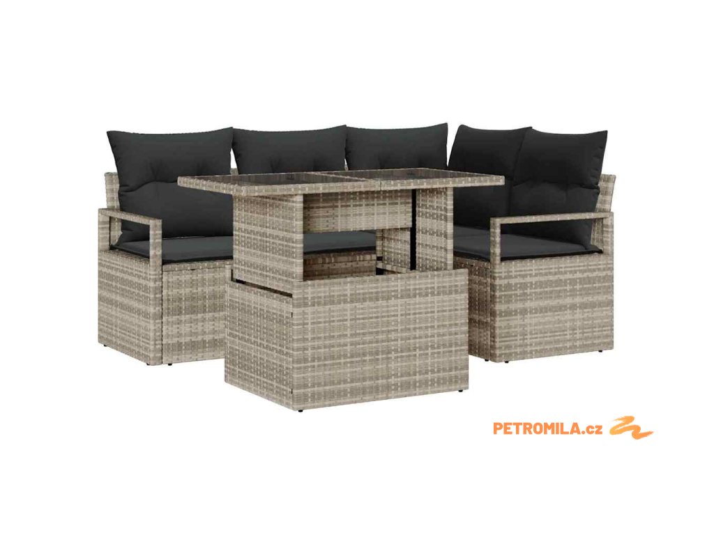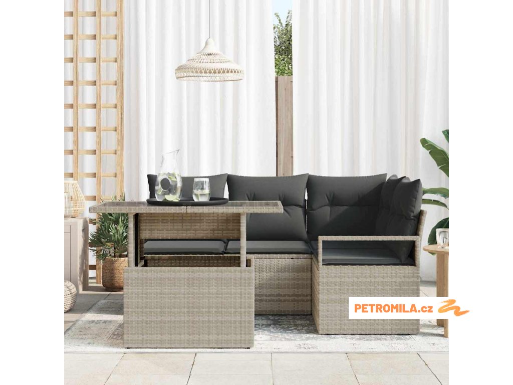 Sada zahradních pohovek s polštářem 5 pcs Světle šedá polyratan