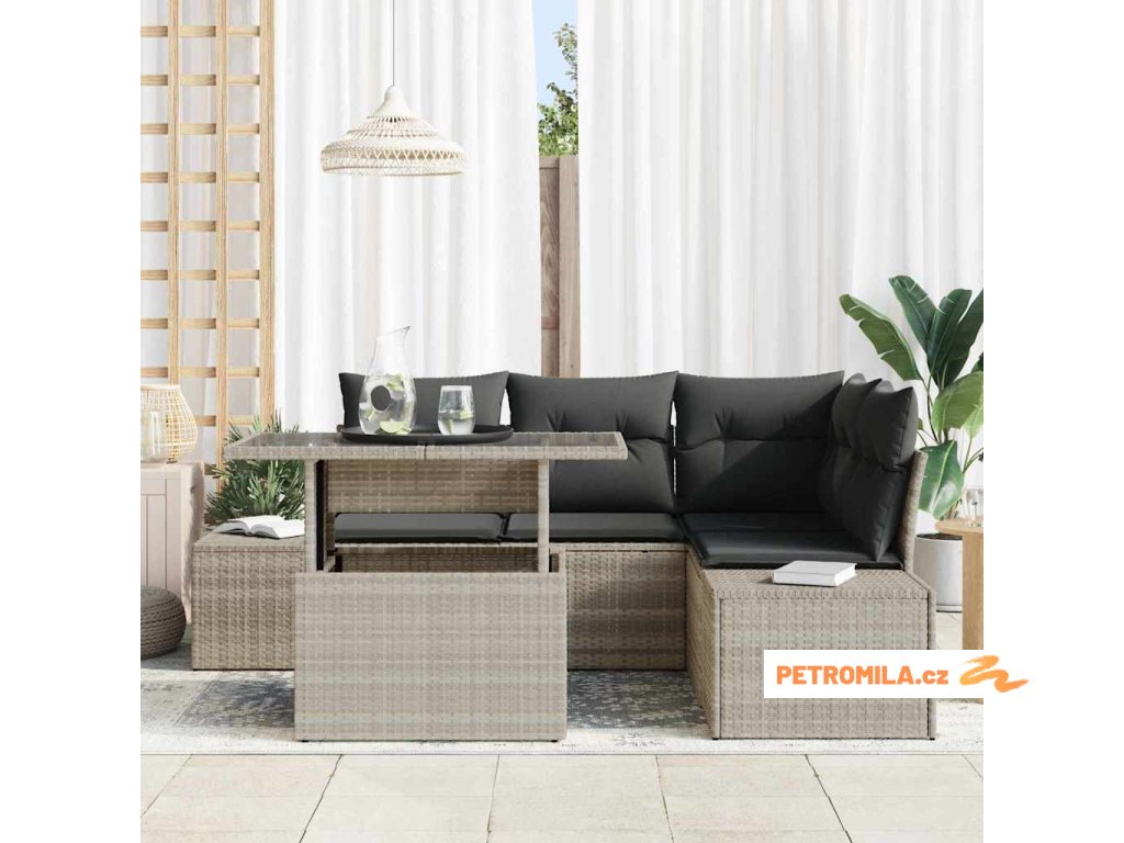 Sada zahradních pohovek s polštářem 5 pcs Světle šedá polyratan