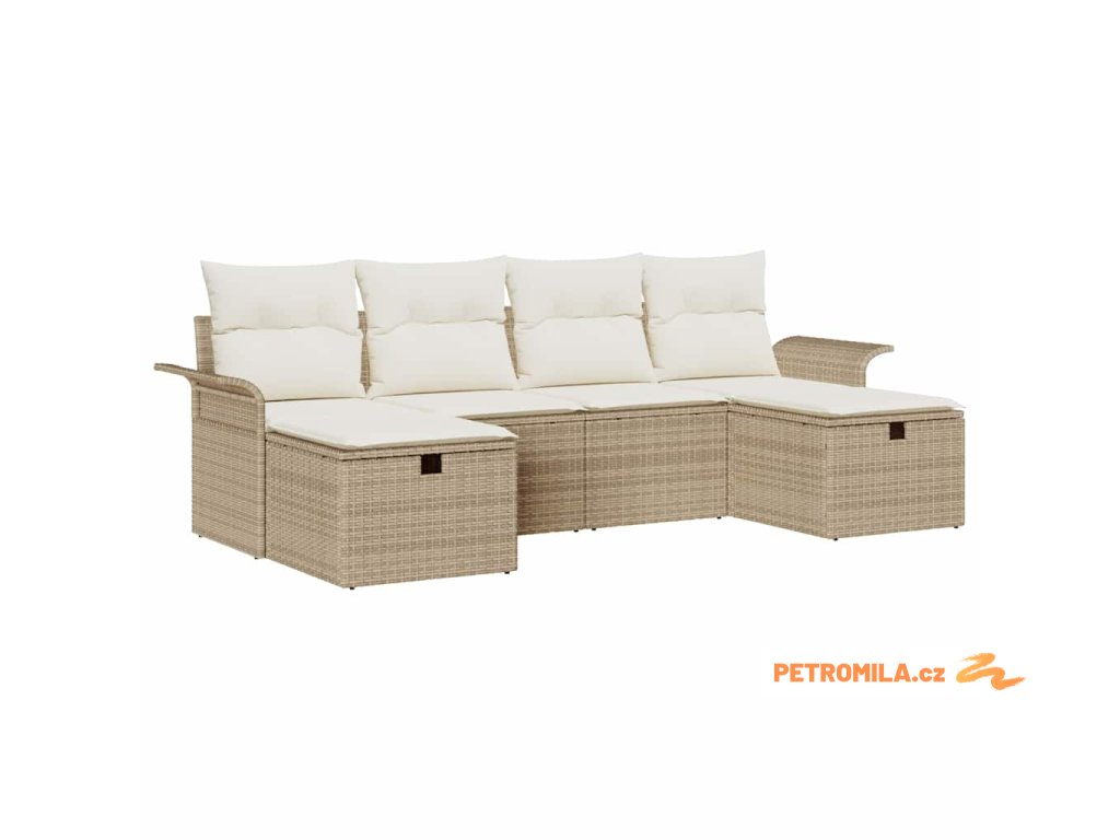 Sada zahradních pohovek s polštářem 6 pcs béžová a krémová