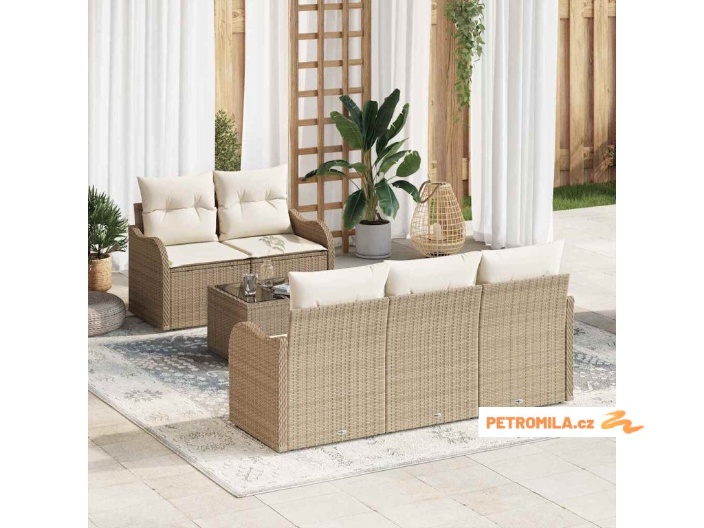 Sada zahradních pohovek s polštářem 6 pcs Béžová a krémová