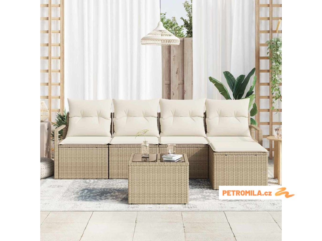 Sada zahradních pohovek s polštářem 6 pcs Béžová a krémová