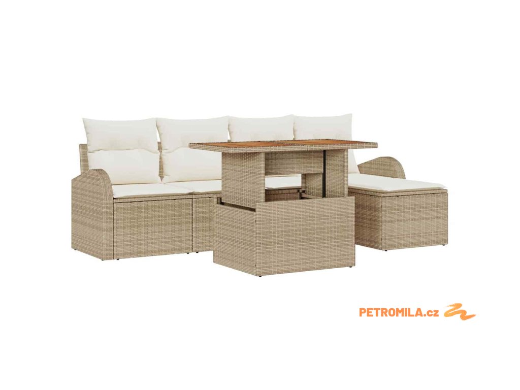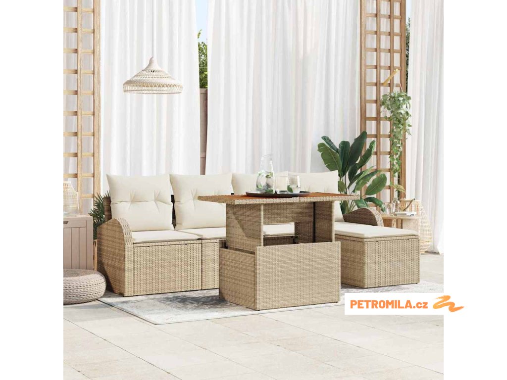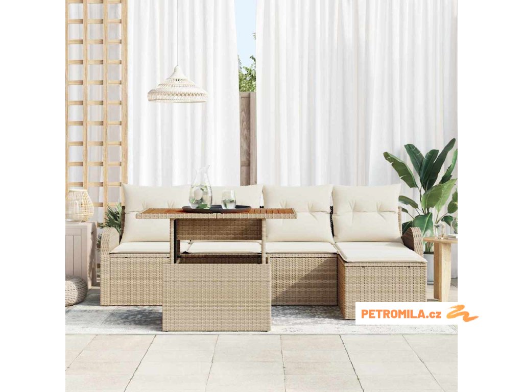 Sada zahradních pohovek s polštářem 6 pcs béžová a krémová