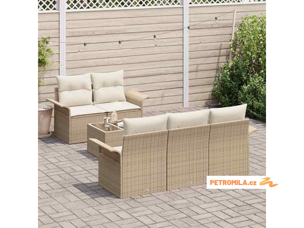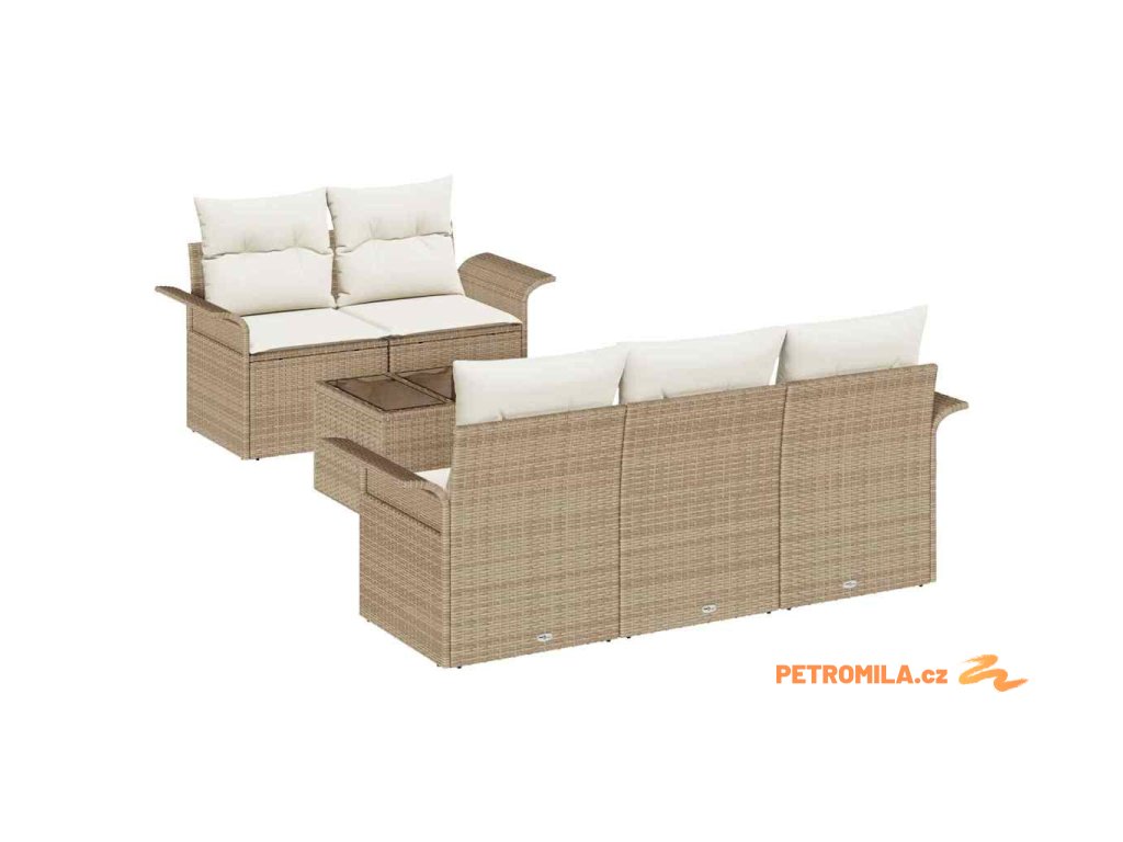 Sada zahradních pohovek s polštářem 6 pcs Béžová a krémová