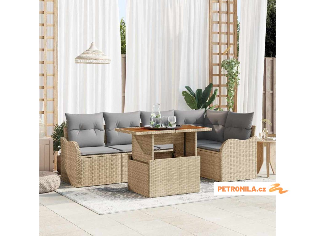 Sada zahradních pohovek s polštářem 6 pcs béžová a světle šedá