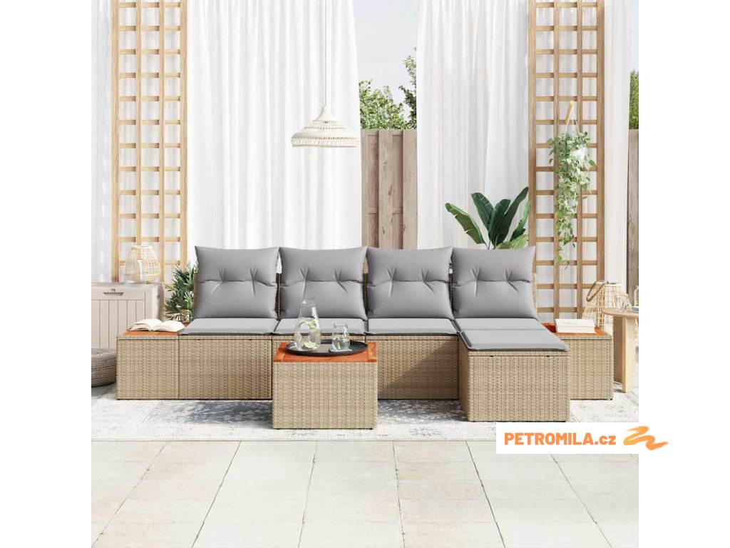 Sada zahradních pohovek s polštářem 6 pcs béžová a světle šedá