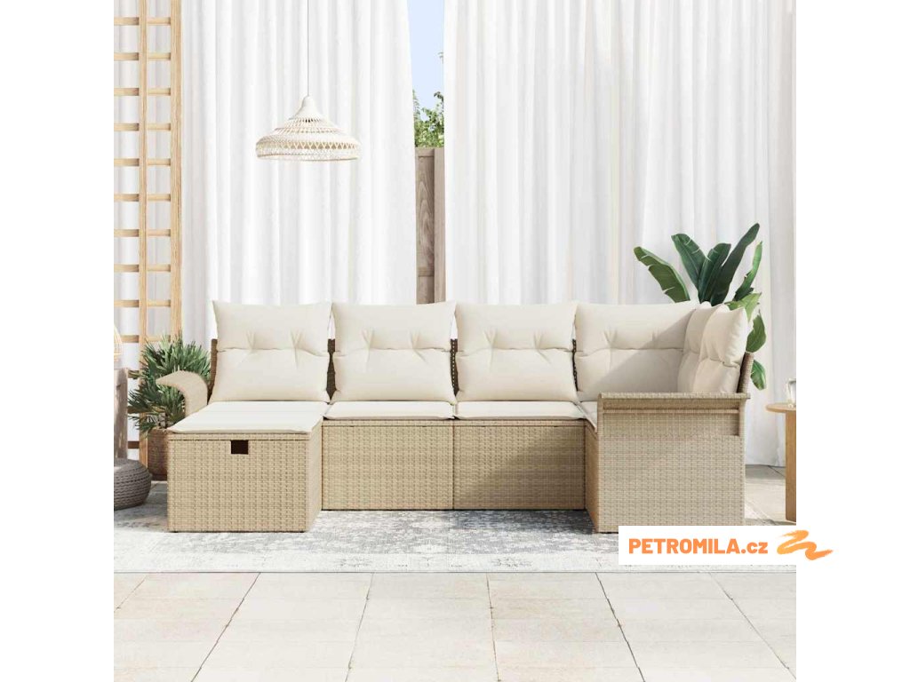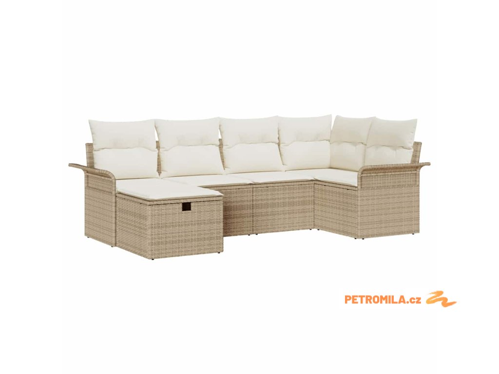 Sada zahradních pohovek s polštářem 6 pcs Béžová Poly ratan