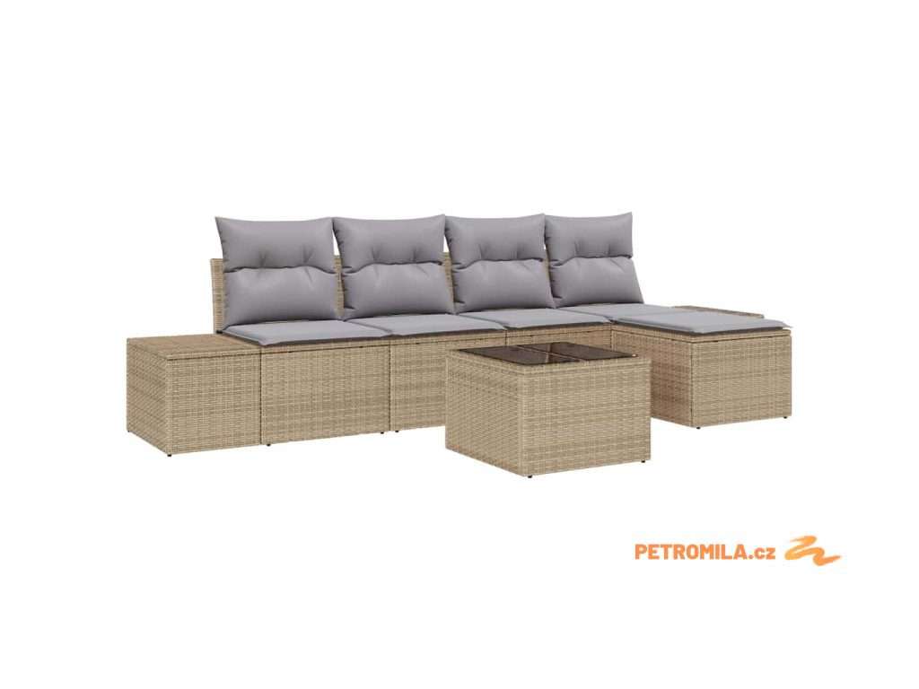 Sada zahradních pohovek s polštářem 6 pcs Béžová polyratan
